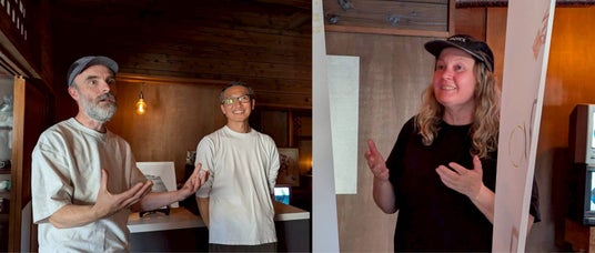 「とゞ兵」ではこれまでに多くのアーティストが「TODOHYO Artist Residency」として滞在し、制作を行なっています。このツアー期間中に滞在をしていたAndrew Black 氏(UK)とAriane Geil 氏(Germany)は、「alpha_alpha」としてアニメーションと環境音楽で空間を創るアーティストであり、ツアー参加者はまずこの作品に触れ、彼らと直接対話する刺激的な機会を得ることができました。