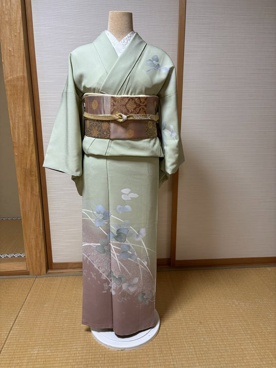 訪問着 薄緑色