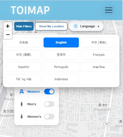 TOIMAPでは2025年11月より、従来の日本語・英語に加え、中国語(簡体・繁体)、韓国語、フランス語、スペイン語、ベトナム語など計11言語への対応を開始しました。 そして、機能リリース直後から、英語以外の言語設定によるアクセスが観測され始めました。 単なるマップ利用だけでなく、各言語での「日本のトイレの使い方(マナー啓発)」ページの閲覧も確認されています 。