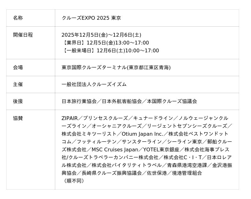 イベント名称:クルーズEXPO 2025 東京公式サイト:https://cruise-expo.cruise-ism.com/