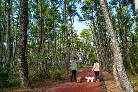 シーガイアエリアに隣接するサンビーチ一ツ葉は、宮崎県内唯一の美しい人工ビーチ。雄大な黒松林沿いに続く砂浜と、開放感あふれる海岸エリアが魅力の、愛犬との散策に最適なスポットです。