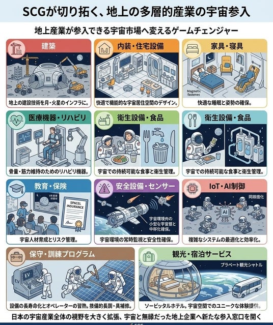 ステラクレードルグラビティー(SCG)が切り拓く、地上産業の宇宙参入領域のイメージ