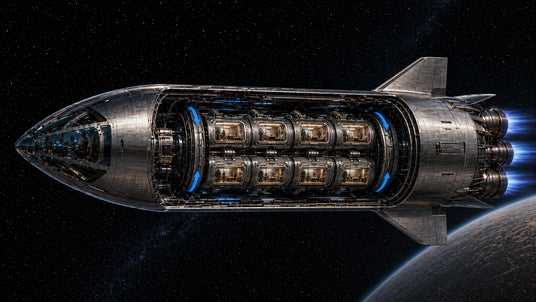 宇宙船内に同心円状の回転居住区を配置した人工重力構造のイメージ