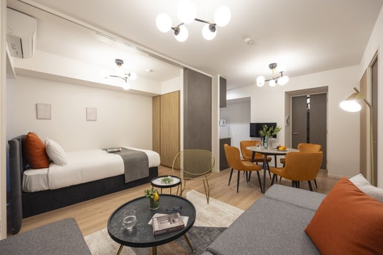 客室は4~8階が1LDK(約35平方メートル )、9~10階が2LDK(約54平方メートル )の全45戸で構成されており、ファミリー・グループ旅行から個人旅行まで幅広いゲストニーズに対応します。全室にキッチンを完備した滞在型の設計により、数泊から数週間にわたる中長期滞在にも対応できる居住性を備えています。