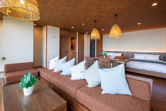 コンテナを活用した体験型宿泊施設です。全客室オーシャンビューで、離れ形式のコテージタイプとして設計しており、すべての客室で源泉かけ流し温泉をご利用いただけます。一部の客室には専用の露天風呂を備えており、滞在そのものがアクティビティとなるような、五感で楽しむ新しい滞在体験を提供いたします。