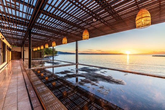 別府湾を一望できる開放感あふれるロケーションの中、心身ともに癒される温浴体験をご提供いたします。最大48名まで同時に利用可能な砂湯では、海風や波の音を感じながら心身をじっくりと温める特別な時間をお過ごしいただけます。砂湯をご利用いただいた後は、源泉かけ流しの大浴場で、別府温泉の魅力をご堪能いただけます。館内にはバーカウンターもあり、乾いた喉を潤しながら湯上がりのひとときをゆったりとお楽しみいただけます。