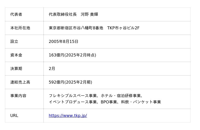 【株式会社ティーケーピー 会社概要】