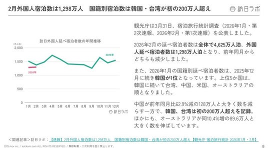 2月外国人宿泊数は1,298万人 / 訪日中国人、9割が春節旅行の計画でAI活用 ほか:観光・インバウンドの最新動向がわかる!インバウンド情報まとめ「2026年4月前編」を訪日ラボが公開