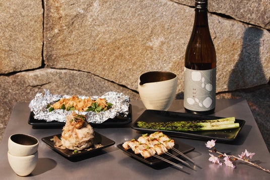 串焼屋TRUNK(KUSHI)では、炭火焼ならではの新メニューが登場します。「焼き長芋と焼き明太子のポテトサラダ」は、香ばしく焼いた長芋と明太子を合わせた酒肴に最適な一品。「たっぷり桜エビのじゃがバター」は、新じゃが芋に桜エビを重ねた季節感あふれる仕立てです。「アスパラガス」や「鶏むねわさび」は、炭火焼で素材の持ち味を引き出しました。締めには、焼きおにぎりにTRUNK(KUSHI)特製の鶏スープを合わせた「焼きおにぎりの出汁茶漬け」がお勧めです。