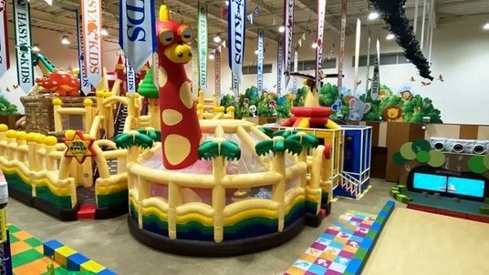 アメリカから初上陸した知育玩具の巨大ブロックをはじめ、「ふわふわすべり台」や「ボール温泉」などのアトラクションが充実している関西最大級の室内遊園地。