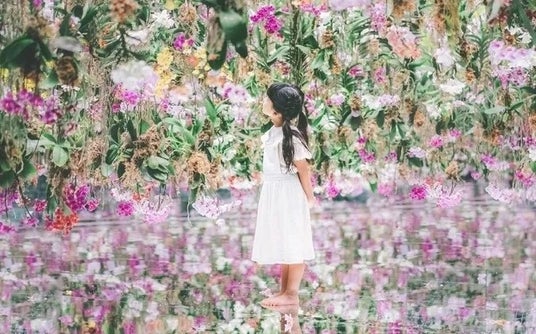 裸足で水に入って楽しむ作品や13,000株を超えるランの花を使用した庭園作品など、テニスコート約38面分の空間内に超巨大なデジタルアートが広がる没入型ミュージアム。