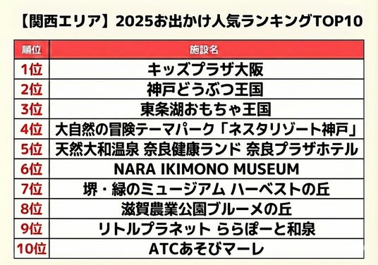 【関西エリア】お出かけ人気ランキングTOP10