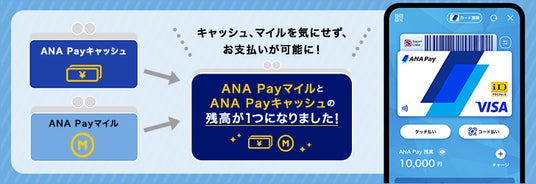 サービス開始当初は「ANA Payキャッシュ」と「ANA Payマイル」の2つに分かれていた残高を1つに統合。クレジットカードや銀行口座などからのチャージ分とマイルを組み合わせて支払えるようになり、1マイル単位での有効活用が可能になりました。