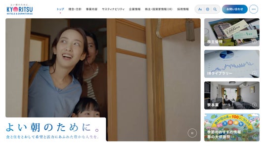 全国で学生寮・社員寮「ドーミー」、ホテル「ドーミーイン」・「共立リゾート」、首都圏を中心とした高齢者向け住宅「ドーミーシニア」を運営する株式会社共立メンテナンス(代表取締役社長:中村 幸治/本社:東京都千代田区)は、2026年4月15日(水)、コーポレートサイトを全面的にリニューアルいたしました。