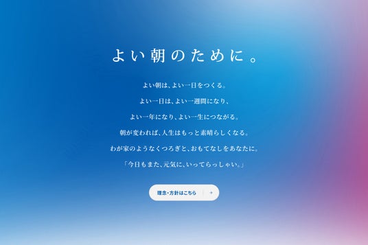今回のリニューアルでは、当社のコーポレートスローガン「よい朝のために。」を軸に捉え、全ステークホルダーに対し、当社のブランドイメージを鮮明かつ包括的に伝えるプラットフォームへと刷新しました。