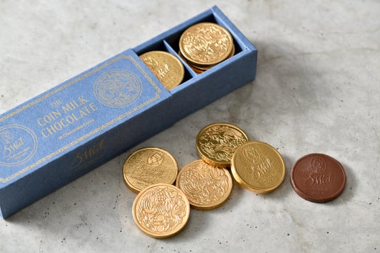 なめらかな口溶けと優しいミルクの甘さが口いっぱいに広がります。金色のコイン型に個包装されたビジュアルにわくわくするチョコレートです。