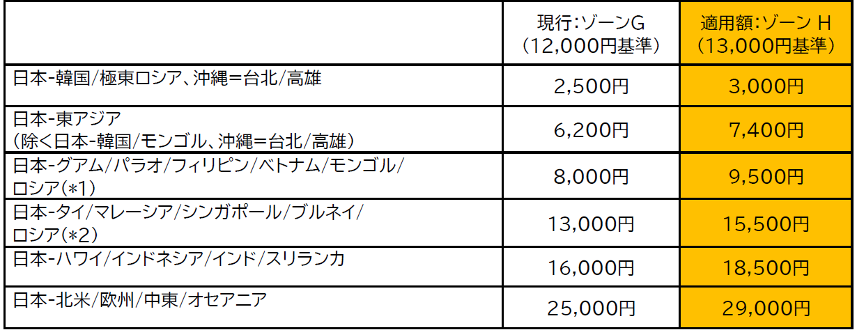 2)2026年4月以降発券分の燃油特別付加運賃については、2026年2月にご案内予定です。
