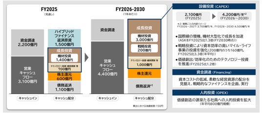 2030年度のマイル/金融・コマース領域のEBITは、2025年度対比1.6倍となる700億円を目指してまいります。この飛躍的な成長を実現するため、2026年度からの5年間で800億円以上の戦略投資を実施します。