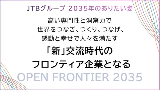 株式会社JTBは、2035年を見据えたJTBグループの長期ビジョン『OPEN FRONTIER 2035』(以下、本ビジョン)を策定しました。JTBグループの2035年の「ありたい姿」を定義し、「新」交流時代のフロンティア企業として、人と人、人と地域、人と組織をつなぐ新たな価値創造に挑戦していきます。