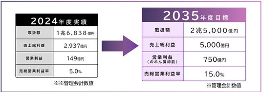 2035年の「ありたい姿」を具体化する収益性指標として、以下の目標を掲げます(2024年度実績比)。