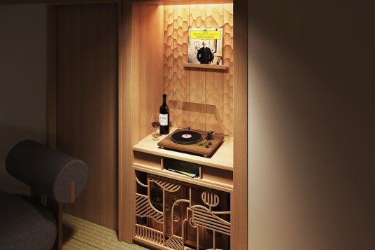 松本市は、かねてから「学(学問)・岳(山岳)・楽(音楽)」の「三ガク都」と呼ばれ、独自の文化を育んできました。界 松本では、このうちの「楽(音楽)」をテーマに、すべての客室をご当地部屋「GAKUの間」へと刷新します。 全客室にスピーカーとアナログレコードプレーヤーが配され、滞在中は、松本市にゆかりある音盤をはじめ、多様なジャンルの音楽からその時の気分に合わせた一枚を選び、日常を忘れるリラックスした時間を過ごすことができます。また、寝台のヘッドボードを彩るのは、名門ギターメーカーが集まる松本の塗装技術として培われた「松本渓声(けいせい)塗り」のアートパネルです。深みのある艶やかな木目が、この土地に息づく工芸の美しさと、音楽の街としての息遣いを静かに伝えています。