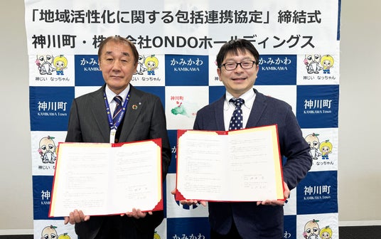 株式会社ONDOホールディングス(埼玉県さいたま市、代表取締役 山崎寿樹、以下 ONDOホールディングス)と神川町(町長 櫻澤 晃)は、2026年2月13日に神川町役場にて「地域活性化に関する包括連携協定」の締結式を行いました。