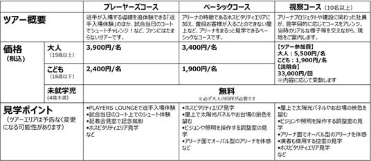 ツアーは全部で3つのコースをご用意しています。今回は「プレーヤーズコース」「視察コース」のみ受付を実施いたしますが、それぞれ追加開催日程については、確定次第、TOYOTA ARENA TOKYO公式HP等で随時発表いたします。
