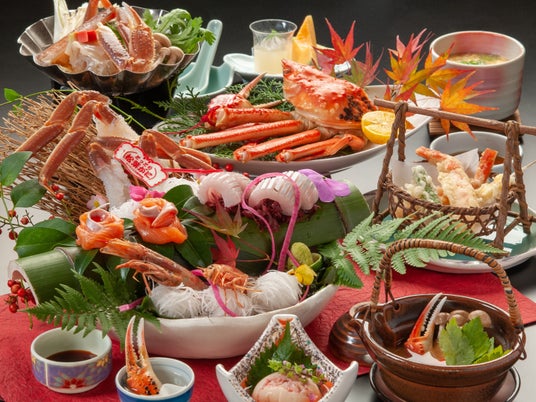 タグ付き活松葉蟹を使ったカニ料理フルコースをはじめ、2026年3月までの期間限定で、ご希望に合わせ4タイプの蟹料理プランをご賞味いただけます。