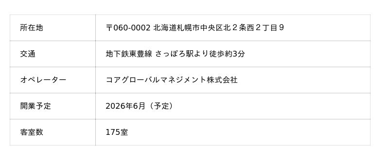 当社100%子会社のいちご地所が組成しAMを受託している私募ファンドが保有する、地下鉄東豊線 さっぽろ駅徒歩3分の好立地ホテルが2026年6月(予定)、コアグローバルマネジメント株式会社の新ホテルブランド「リージョニア by クインテッサ」の第1号施設として開業します。