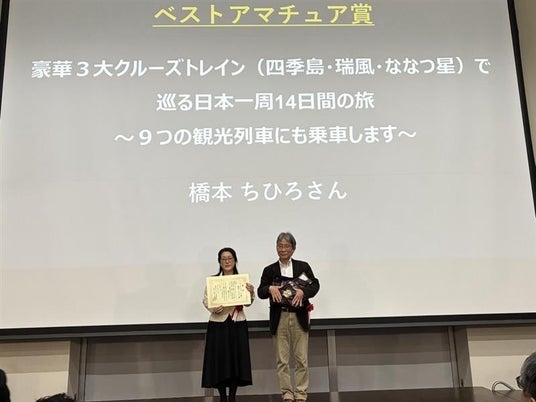 一般部門では、鉄道旅行ファンから「夢の鉄道旅行企画」を募集。55作品の中から「ベストアマチュア賞」は、2026年度のデスティネーションキャンペーン開催地の全てを対象とした、橋本 ちひろさんの作品「豪華3大クルーズトレイン(四季島・瑞風・ななつ星)で巡る日本一周14日間の旅