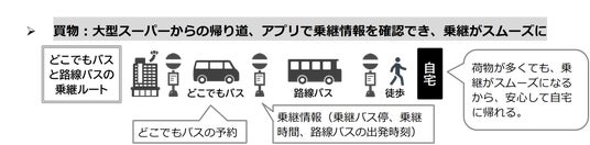 今回の新機能により、利用者はアプリひとつで「どこでもバスのみのルート」「路線バスのみのルート」「どこでもバス+路線バスの乗継ルート」など複数の移動ルートをまとめて比較し、希望に合わせて“えらべる”ようになります。さらに、どこでもバスは検索後そのまま予約まで完結します。