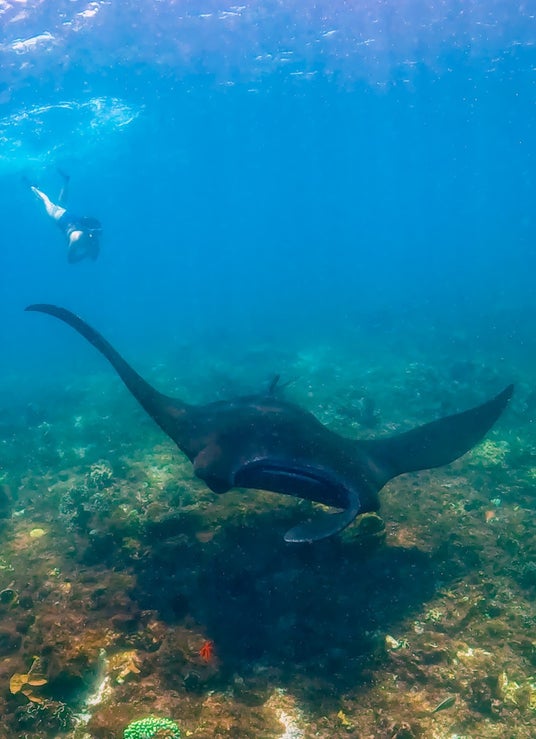 ラブアンバジョーの数ある自然の見どころの中でも、マンタポイントはインドネシアを代表するシュノーケリングおよびダイビングスポットとして知られています。世界で確認されている3種のマンタのうち、リーフマンタとジャイアントオーシャニックマンタがここに生息し、世界でもごく限られた場所でしか見ることのできない貴重な海洋生物との出会いを叶えます。インドネシア政府は2014年、この海域を「世界最大のマンタ保護区」と宣言しました。これにより沿岸にクラス人々の暮らしを支えつつ、マンタの長期的な保護と特別な自然体験を両立させる仕組みづくりが進められています。