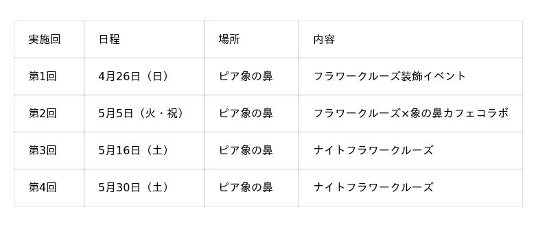 ◆第2回:ゴールデンウィーク限定企画「フラワークルーズ」初出航(5月5日)