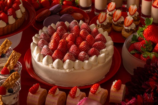 苺の香りが豊かに感じられるこの時期に合わせ、一年のはじまりを彩るスイーツブッフェをご用意しました。タイトルでもある「きらめく苺」は、苺そのものの艶やかさ・果汁の透明感・口いっぱいに広がる甘酸っぱさをそのまま表現しています。今年のテーマは「今年も、苺に恋をする」。 ひと口ごとに“好き”が深まっていくような、ときめきの時間をお届けします。