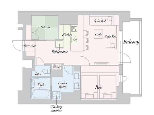 ・1ベッドルームジャパニーズスイート バルコニー付き(62.96m² + 10m² バルコニー)