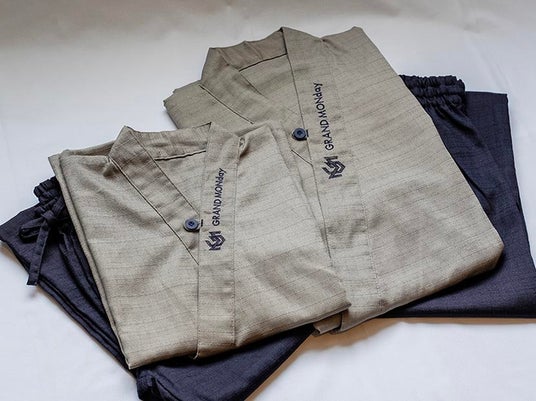 バニラン織の部屋着(作務衣): 通気性に優れた機能性と和の雰囲気、着心地の良さをご堪能ください。