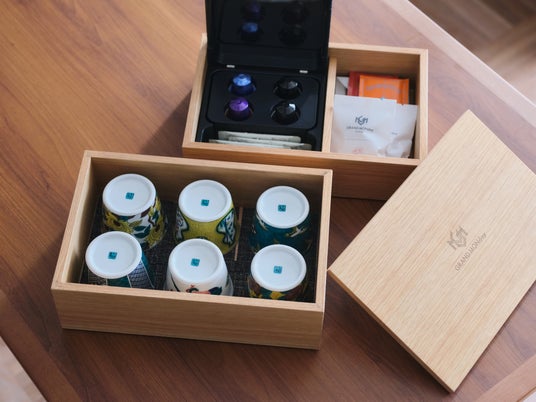 ・九谷焼の茶器、ネスプレッソのコーヒーメーカーなど、細部までこだわり抜いた備品を全室に設置。