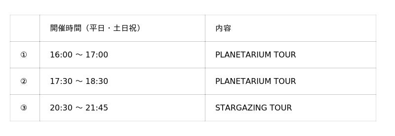 ◆ 「PLANETARIUM TOUR/ STARGAZING TOUR」