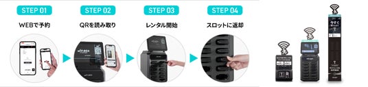 ■予約・受取・返却とすべてのステップが非接触で完了し、驚くほど簡単な使用体験を提供Web予約後、駅や空港などに設置しているボックスからWi-Fiルーターを引き抜くだけで簡単にレンタルできます。また、WiFiBOX貸出機が設置されている場所であれば受取場所と異なる場所での返却も可能です。
