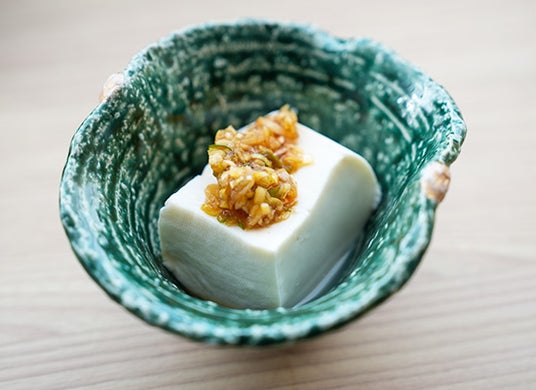 佐渡産コシヒカリを主役に、佐渡味噌を使った味噌汁や、地元で揚がった新鮮な魚、佐渡産大豆を使用した油揚げやがんもに加え、佐渡海洋深層水のにがりと国産大豆100%を使用し、福祉施設で働く島民が丁寧に仕上げた手作り豆腐、地元加工場で作られた塩辛などをご用意。さらに、いごねり・ながも・岩のりといった海藻類や、島に受け継がれてきた保存食を取り入れた小鉢など、佐渡の人々の朝ごはんをイメージした、どこかほっとする味わいが特長で、島の自然とともに育まれてきた食文化を感じていただけます。