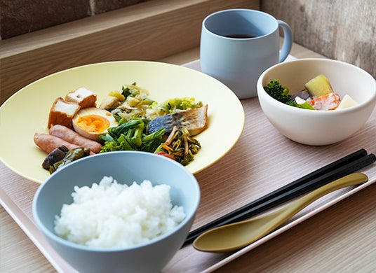 環境に配慮した「ライスレジン(R)」の器で味わう朝ごはん