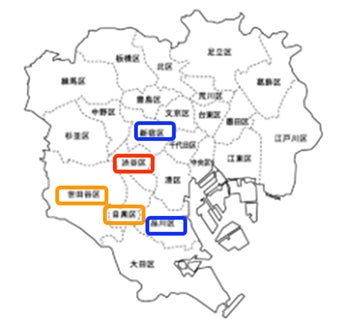 多い順に渋谷区・世田谷区・目黒区・新宿区・品川区