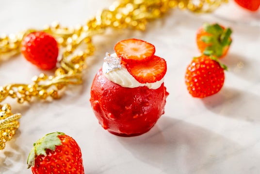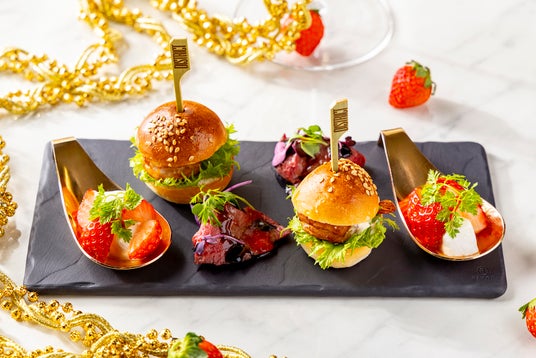 今回のアフタヌーンティーには、新鮮ないちごをたっぷりと使い、ペニー、金箔、クローバー、鍵といったラッキーモチーフを散りばめ、見た目も気分もハッピーに。