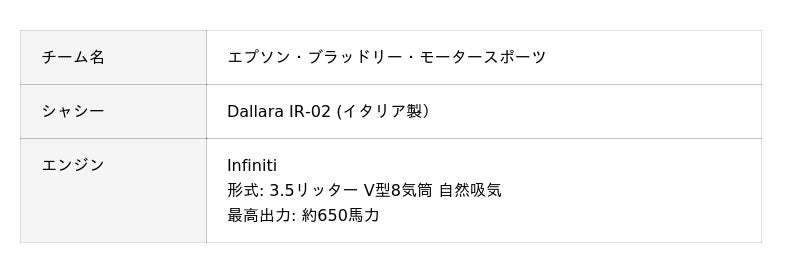2002年にインフィニティ製V8エンジンを搭載したIR-02。バンク角のついたオーバルコースを安定して走行するため、左右で異なるキャンバー角を与える特有のセッティングが施されている。なお外観は、シーズン終了後のプロモーション活動のため2003年仕様となっている。