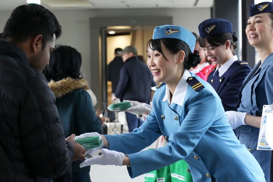また、特別塗装機の到着にあわせて記念イベントを実施し、1946年の創業当時や「レタスサンドイッチ」が運航されていた時代の歴代ユニフォームを着用したスタッフがご搭乗のお客様をお迎えし、80周年記念トートバッグをプレゼントしました。