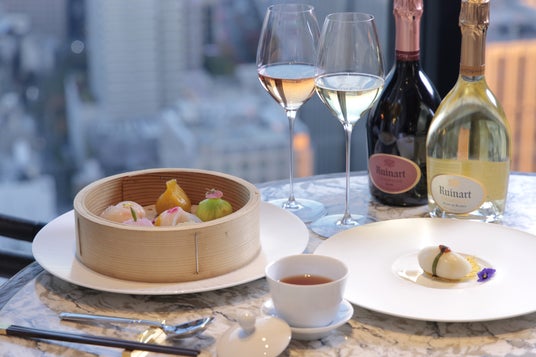 優雅なランチタイムを演出する、週末限定の特別なプランが登場です。点心師が丁寧に仕上げた点心の繊細な味わいを、「ルイナール ブラン・ド・ブラン」「ルイナール ロゼ」のフリーフローとともにお楽しみいただけます。中国茶3種もご用意し、点心をより奥深く味わう体験に。
