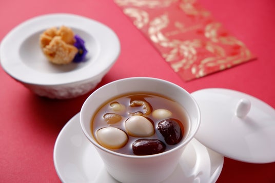 春節特別セットメニュー「粵享新春套餐」より「四宝茶のデザートスープ(紅棗・蓮の実・龍眼・うずら卵入り)」