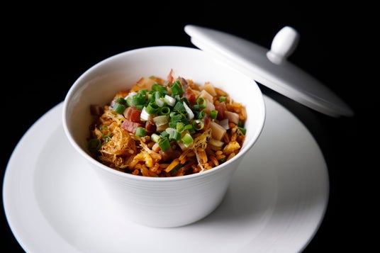 色とりどりの野菜や魚介を皆で高く持ち上げて混ぜ合わせることで、幸運を分かち合う意味があります。このユニークな伝統の食べ方を皆さまにご覧いただき、味わっていただきます。