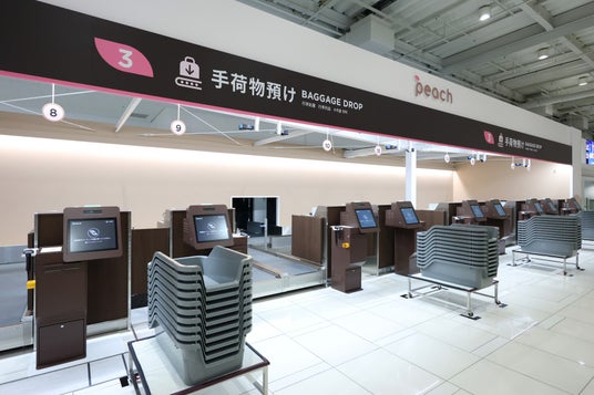 見た目も機能も進化!関西空港Peach国内線カウンターを刷新 Peach 初、自動手荷物預け機の運用を開始