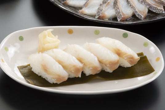 6.真鱈の握り寿司昆布〆:真鱈の身の淡泊な味わいと昆布の風味がよく合います。